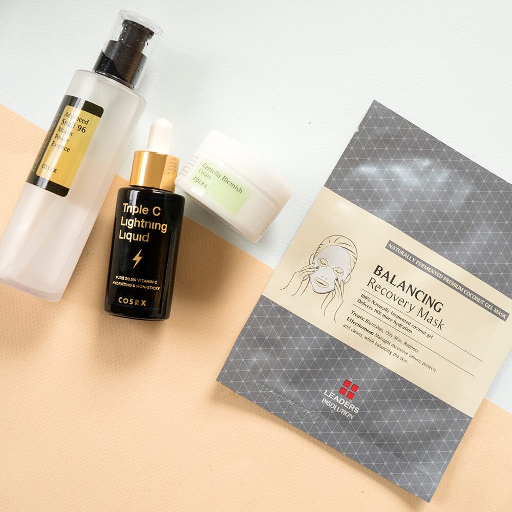 If you haven’t seen our video as to why we love snail mucin for acne scars, watch it here. But to sum it up: Snail mucin is full of amino acids that are known to repair skin damage, making it a savior for skin that has uneven texture. Not only does this essence use snail mucin to even out acne scars, it’s also super hydrating. When you use it after Triple C, it puts the hydration back in so your skin soaks it up and feels super smooth. It provides hydration that doesn’t feel burdensome, AKA thick. Infusing skin with nutrients every night with the Leaders Balancing Recovery Mask